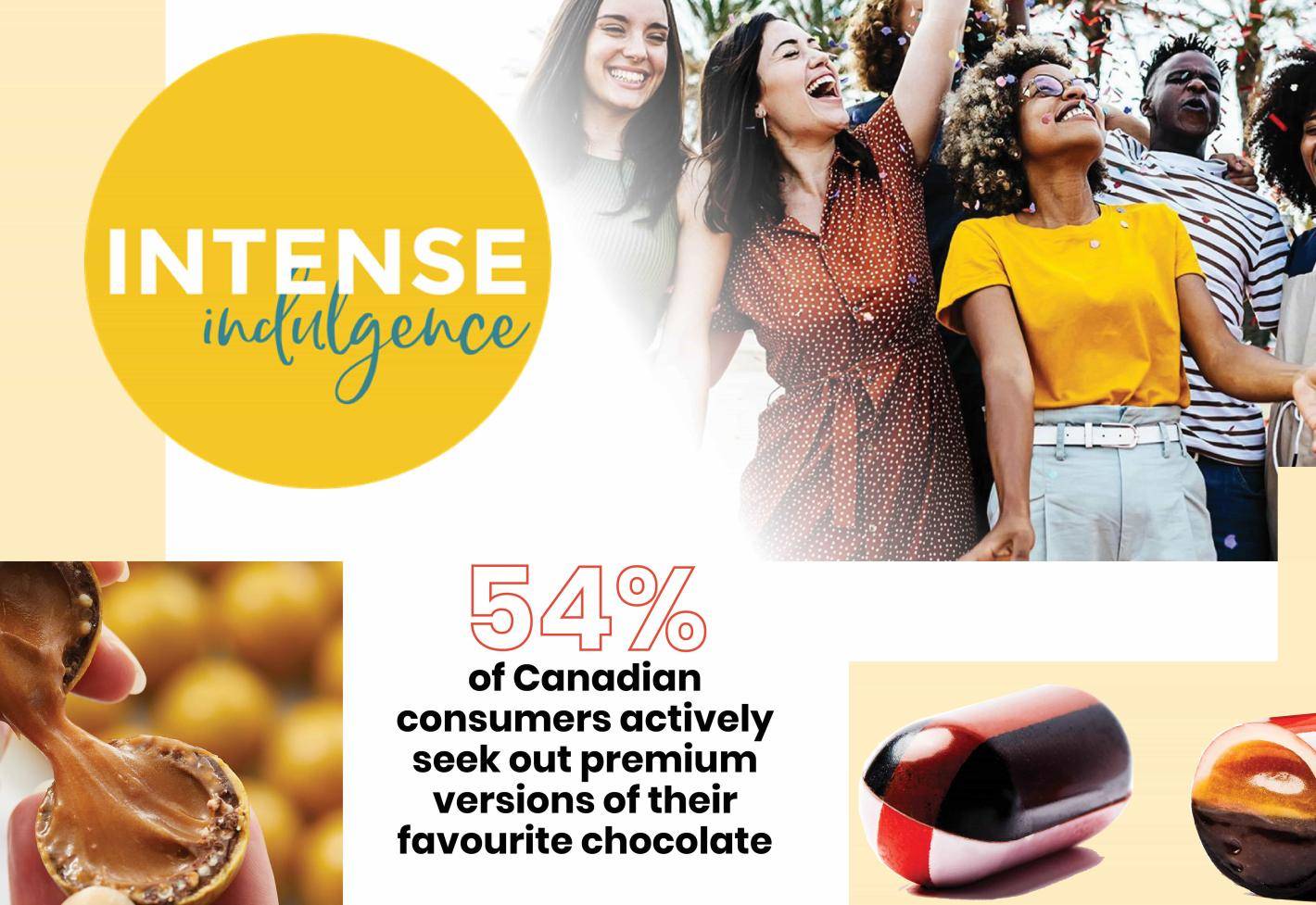 - 54% of Canadian consumers actively seek out premium versions of their favourite chocolate, up +8% vs. two years ago