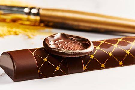 Spicy sansho ganache meets dark chocolate in this luxurious chocolate bar created to wow your guests.